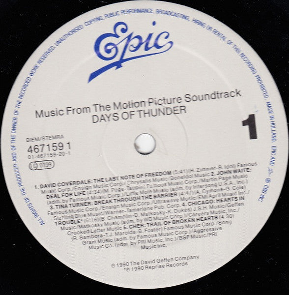 Days Of Thunder (Music From The Motion Picture Soundtrack)- VINYL LP